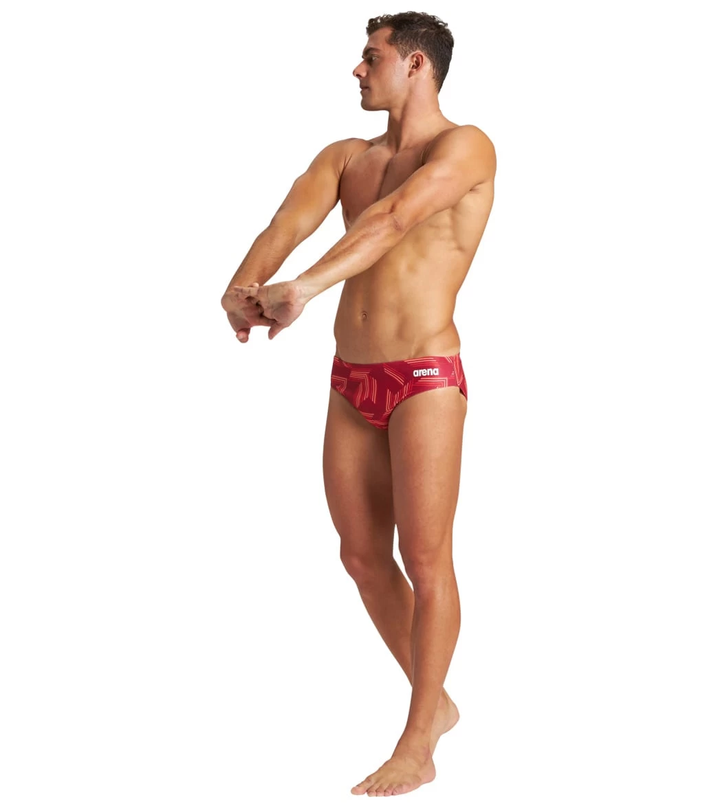 Extremely durable and highly chlorine-resistant, the Arena Men’s Puzzled Brief Swimsuit features integrated UV protection from the sun and quick-drying fabric.