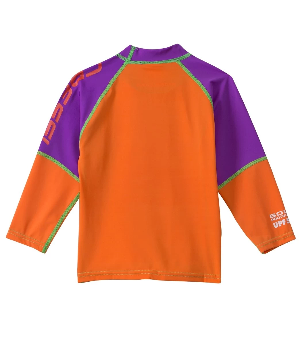 - Girls’ rash guard swim top.