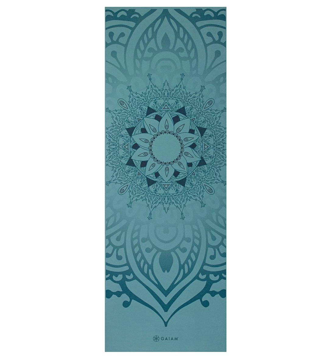 - Care: Unroll and air out for 2-3 days before use. Spot clean with Gaiam’s Yoga Mat Wash or a damp cloth with cold water and mild detergent. Dry flat. Store in a mat bag when not in use.