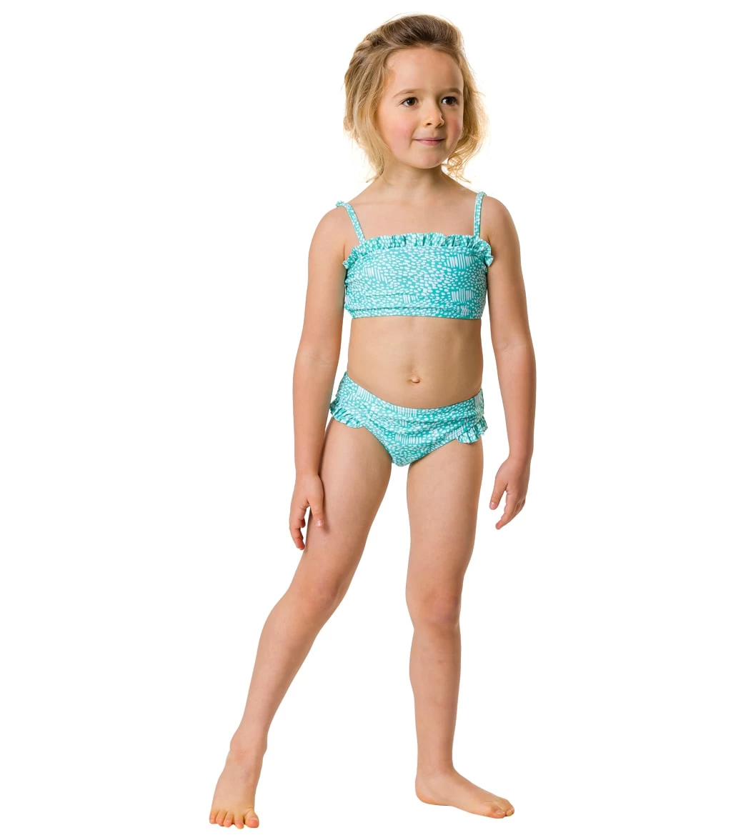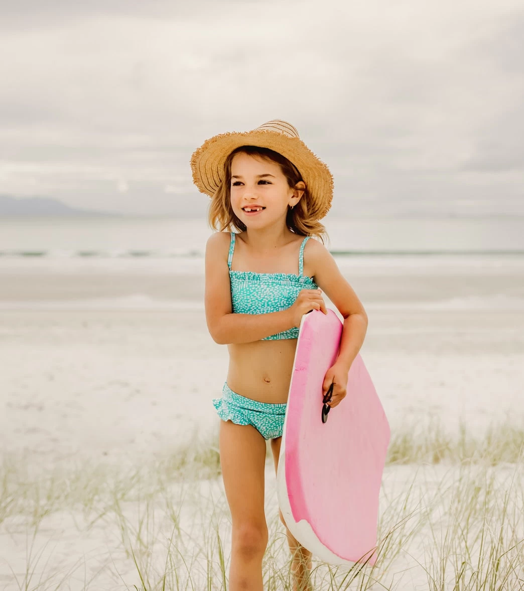 Minty Fresh in The new Spearmint Spot Frilled Bandeau Bikini. Featuring a new on trend bandeau top with ruffle detail and matching bottoms with frilled leg trim.