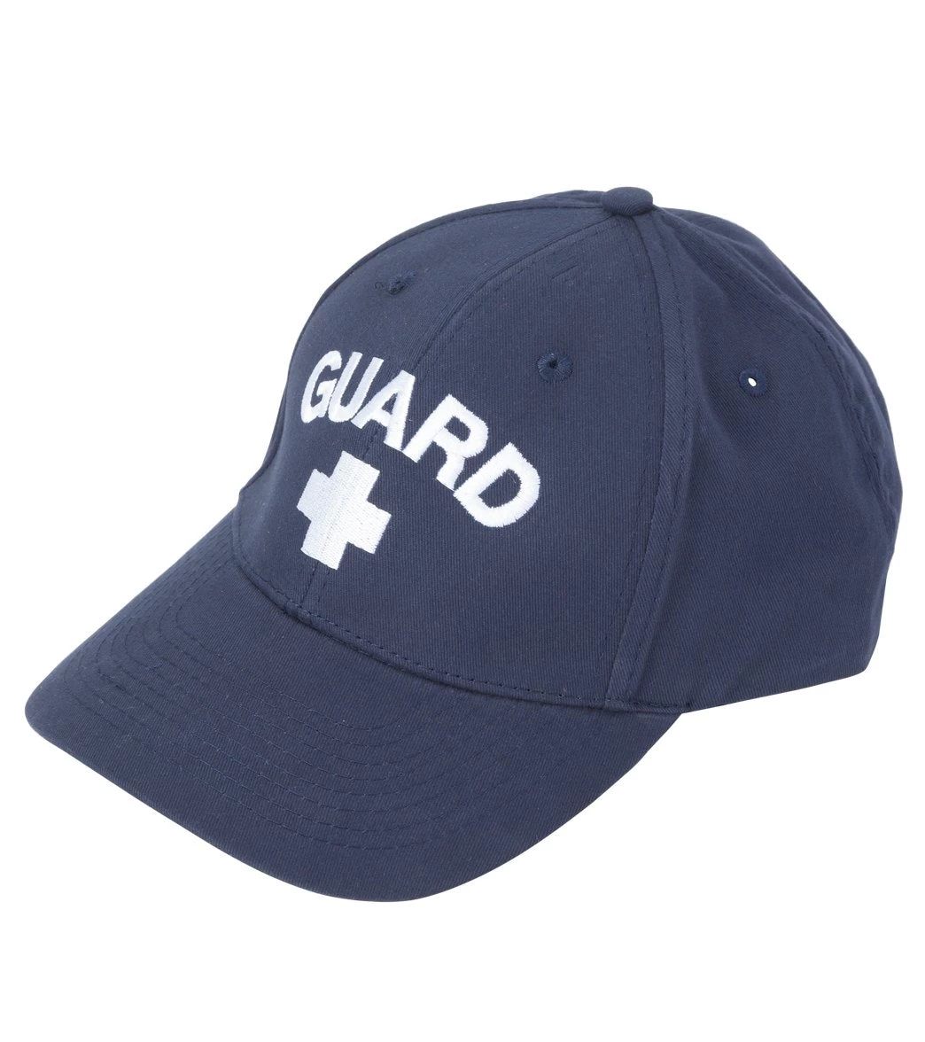 The Kemp USA Lifeguard cap is 98% cotton, low-profile fitted cap with sewn eyelets. Has 6 panels and a fabric strap in back with brass buckle for the perfect fit. Guard and Cross logo embroidered on front.