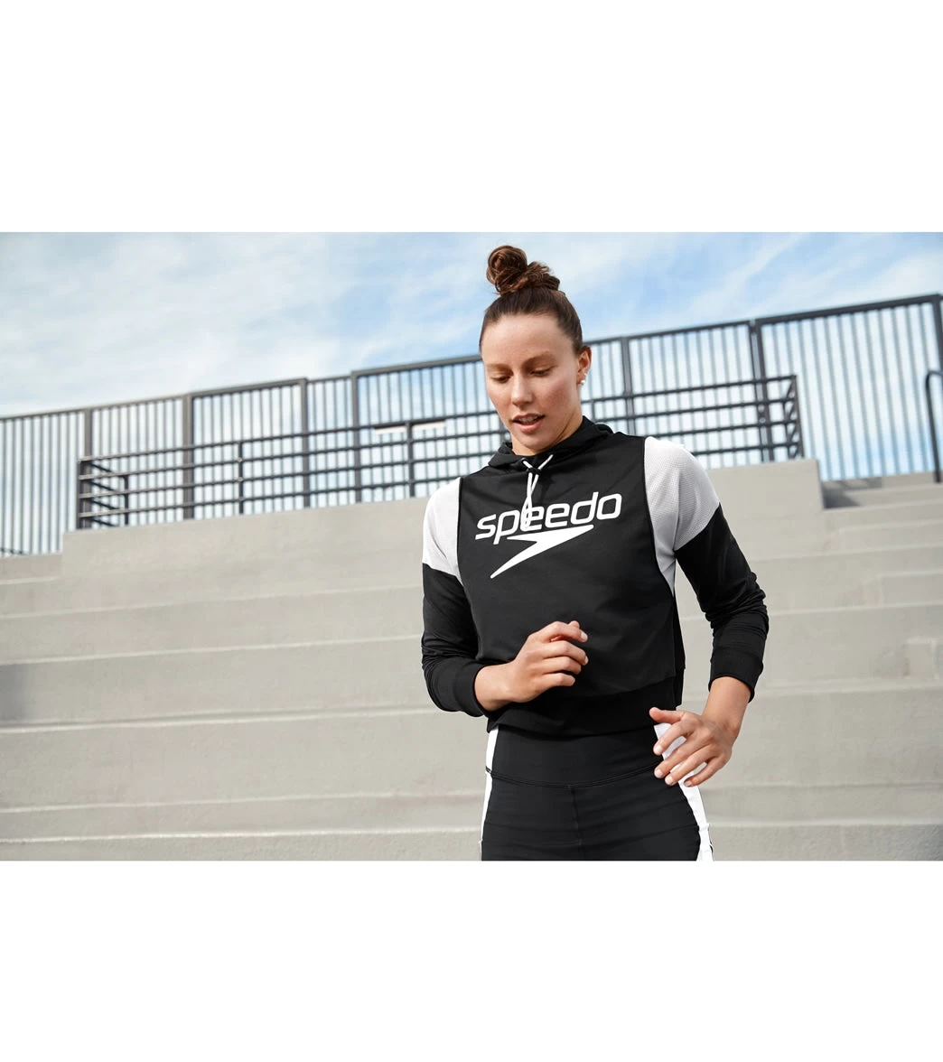 Layer on the Speedo Active Women’s Hoodie to stay warm during your outdoor workout. Has mesh panels for breathability and a drawcord to customize the fit of your hood.