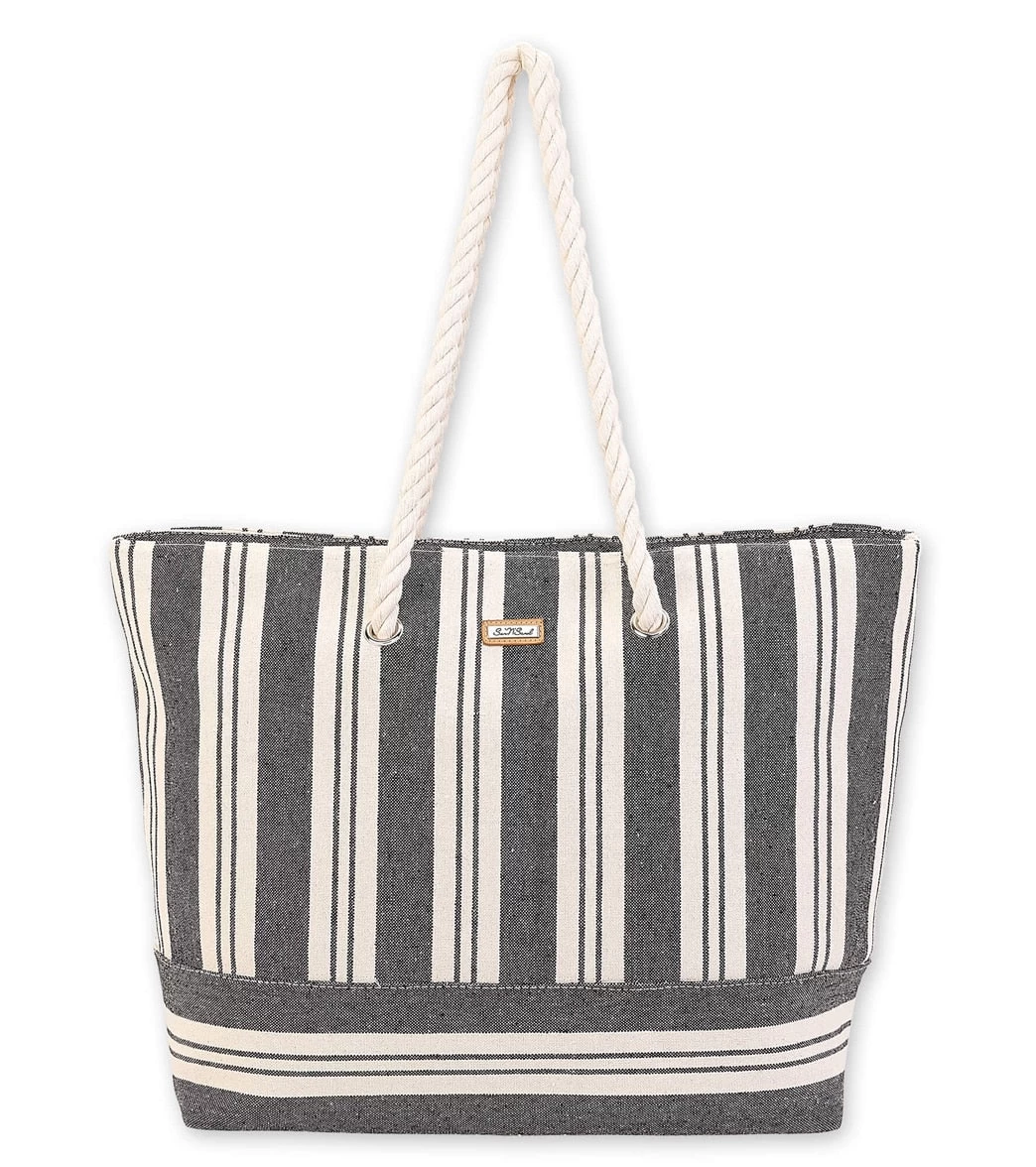 Sun N Sand Striped Canvas Bag w/ Braided Rope Handle