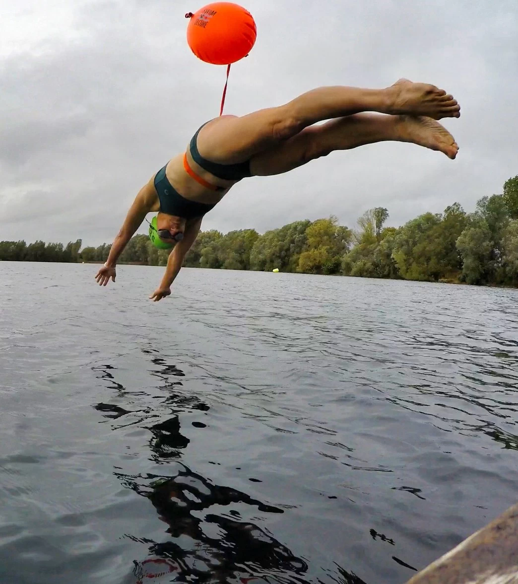Swim buoy perfect for keeping you safe and visible while swimming in open water. The Tow Float is pulled behind while swimming attached to a waist belt and short leash, and floats out of range of arms and kick zone.