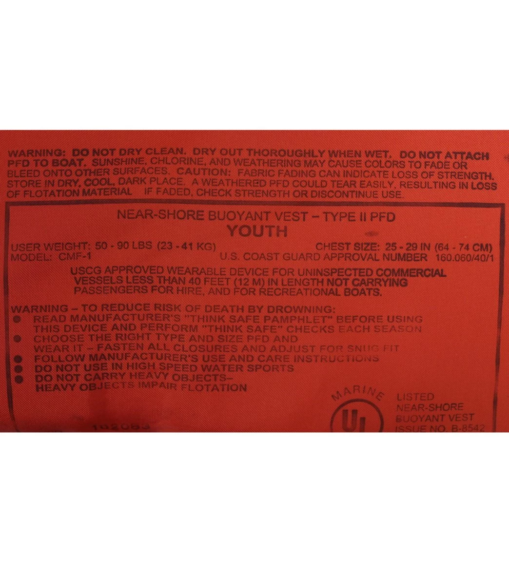Stay ready in the water with the KEMP USA Type II Youth Life Jacket. This is a basic floatation device that is designed to provide minimum buoyancy and turn an unconscious person face up in calm water situations.