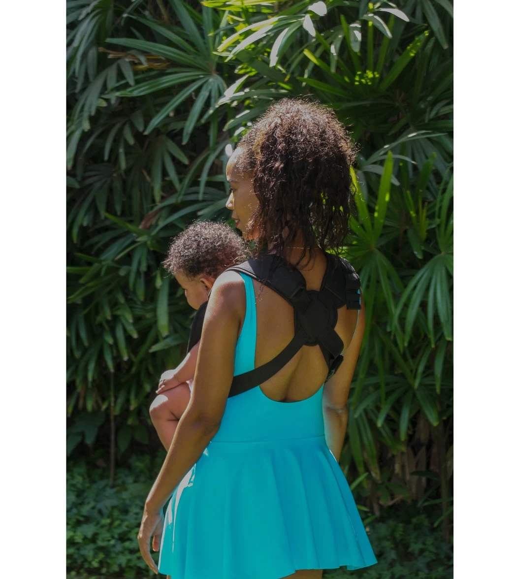 The WaterLand Waterproof Baby Carrier is a waterproof, temperature-controlled baby carrier made for front carrying of a baby or toddler while playing in water.